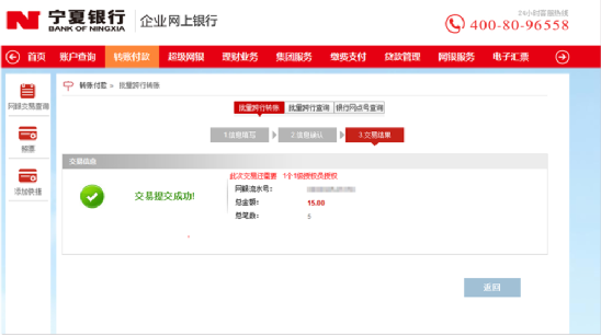 5、交易提交后,請(qǐng)根據(jù)結(jié)果頁面提示確認(rèn)是否需要審核;