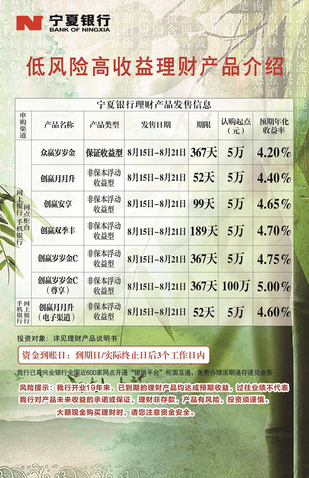 理財產(chǎn)品8.15-8.21
